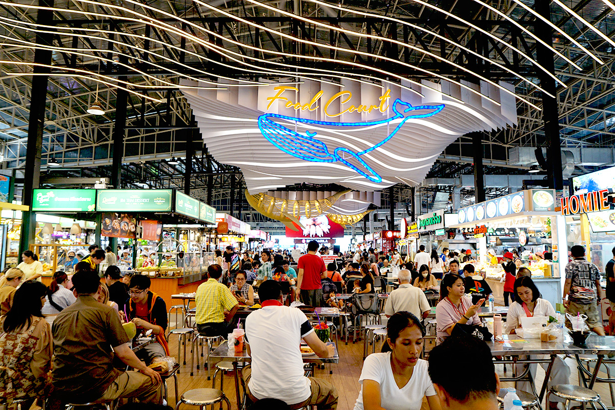 例如在 2023 年 7 月,這裡就推出全新的「鯨魚美食中心」,一次匯聚了多間曼谷必吃名店:陳牛記蟹鉗麵(Sawang Noodle Shop)、安乾炒雞肉粿條 Ann Guay Tiew Kua Gai 、Rat Na Yot Phak 40 Years 蔬菜肉片燴粿條、TROK SUNG 豬腳飯 ……等,宛如把舊城區的美食搬到同一屋簷下!