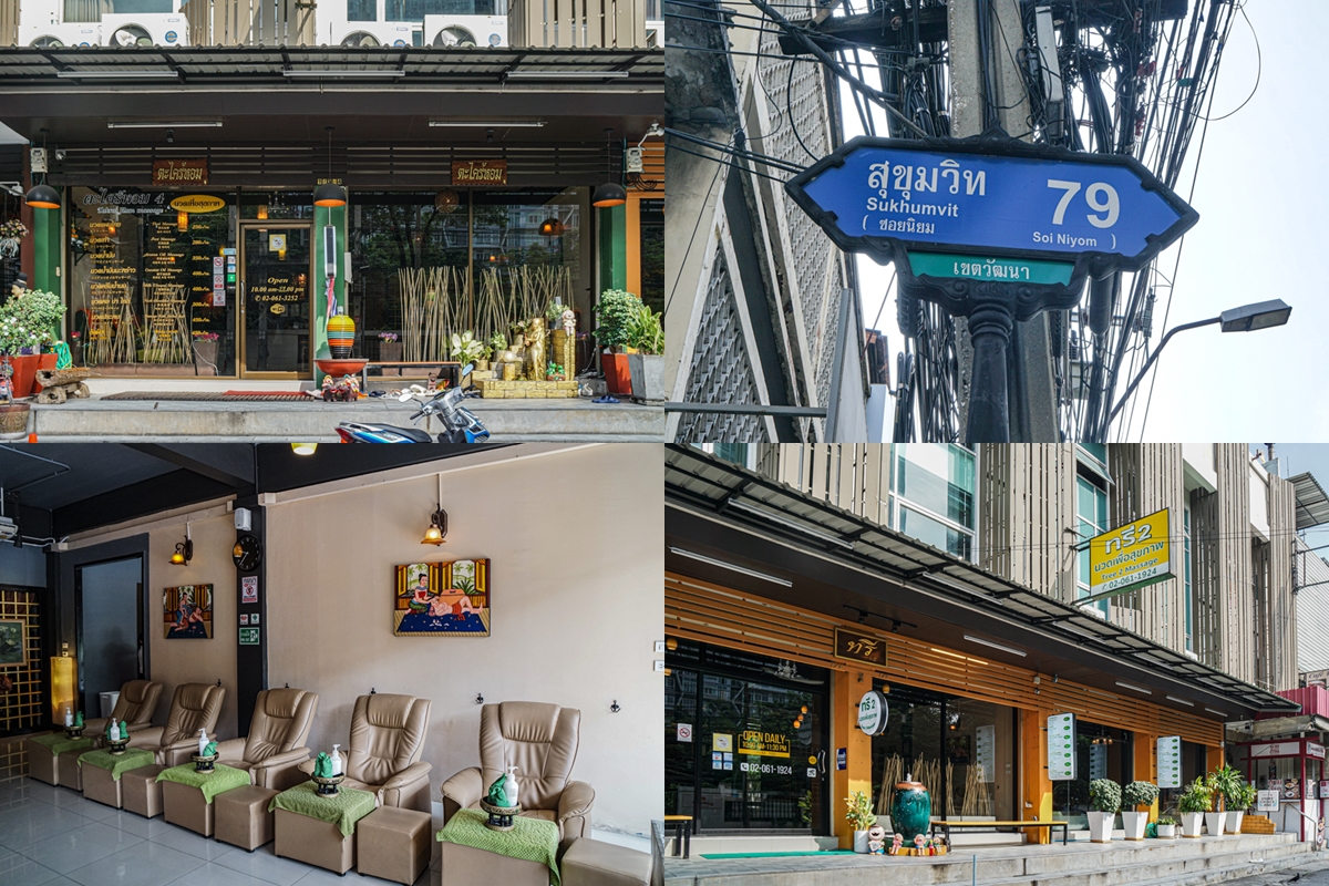 這裡其實是由兩條平行巷子所組成,從On Nut 站 1 號出口出來,首先會經過 Sukhumvit 79 巷,這裡有大約 4、5 家按摩店,店面都蠻大的,環境乾淨舒適。如果不知道要選哪間,可以考慮擁有三家連鎖店的 Takrai Hom,或是口碑穩定的 Tree Massage。