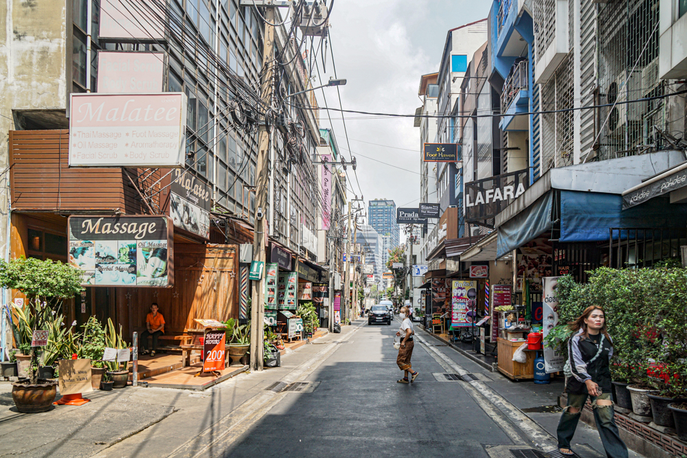 這裡其實是由兩條平行巷子所組成,從On Nut 站 1 號出口出來,首先會經過 Sukhumvit 79 巷,這裡有大約 4、5 家按摩店,店面都蠻大的,環境乾淨舒適。如果不知道要選哪間,可以考慮擁有三家連鎖店的 Takrai Hom,或是口碑穩定的 Tree Massage。