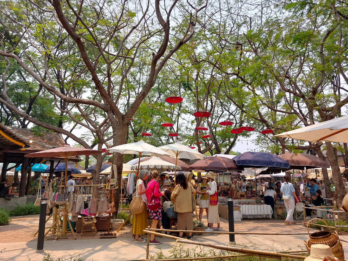不過要特別注意,雖然園區內的超市和餐廳每日營業,但最精華的市集攤位僅於週末開放,而且早上 6:30 就開始囉~建議可以早點來,不僅人少好逛,還能悠閒吃頓早餐、喝杯手沖咖啡,和攤主聊聊天,感受真正的清邁慢生活。