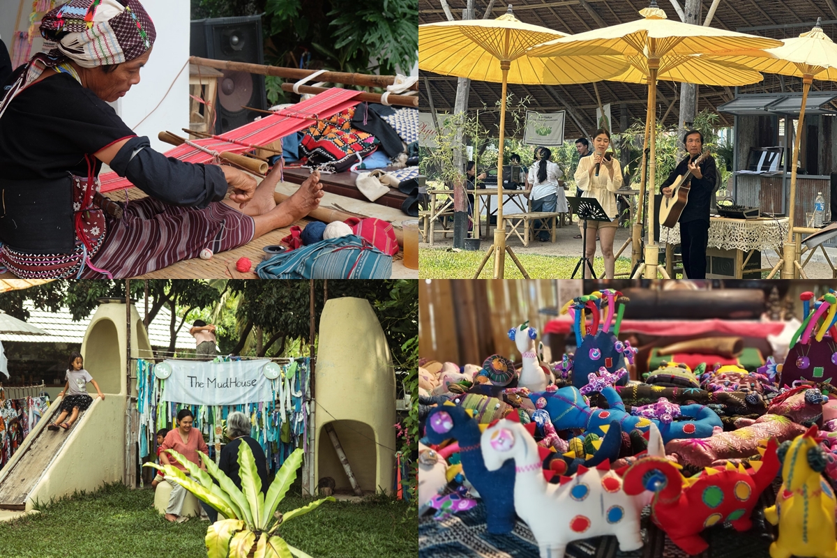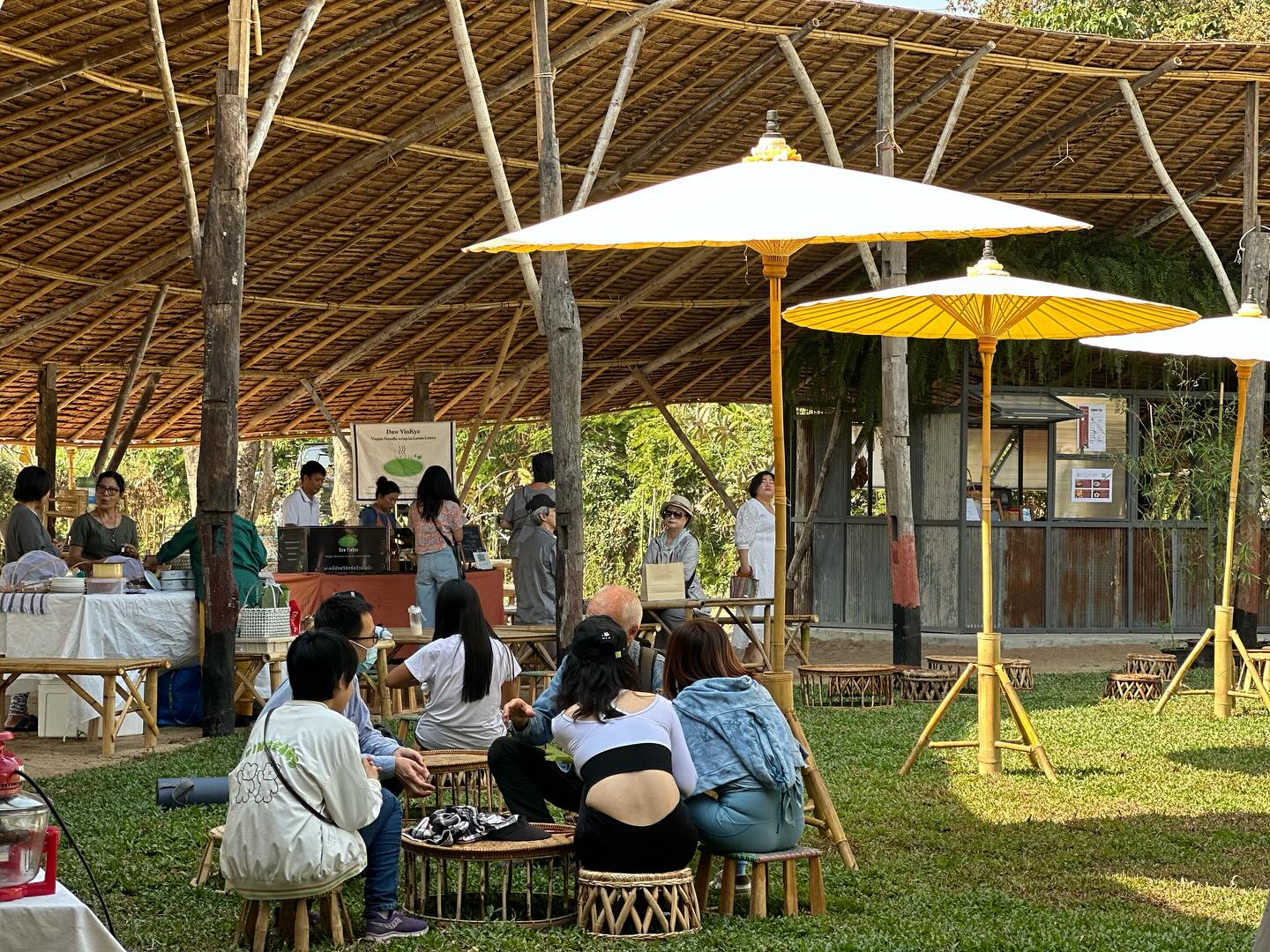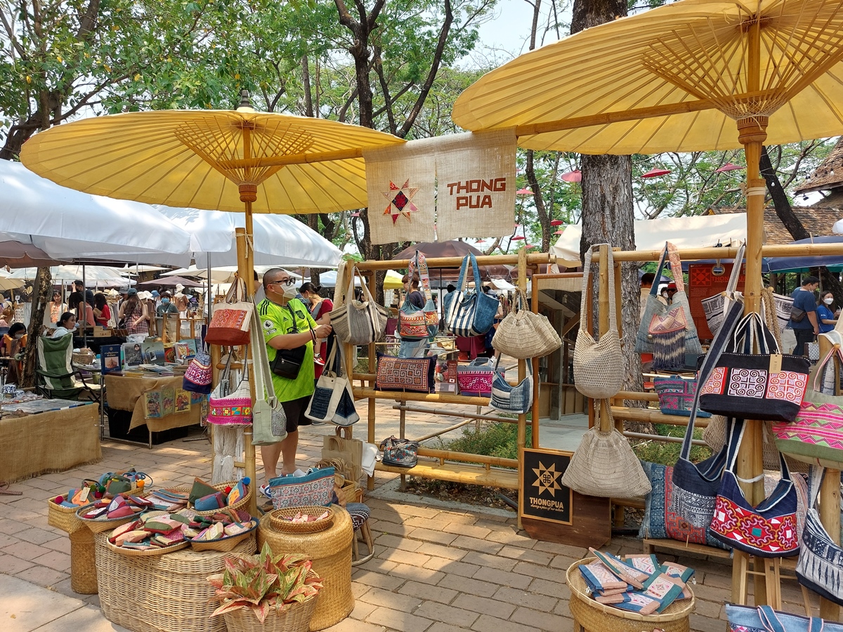 市集聚集了來自在地族群與小農職人的手作選品,包括克倫族織品、手染棉麻服飾、藤編工藝、蜂蠟布、純素食品、友善環境的護膚品與永續日用品等。就連商品包裝都十分用心,有以樹葉編成的手提袋,甚至也有直接用大片荷葉盛裝的餐點,從細節就能感受到對自然的尊重。