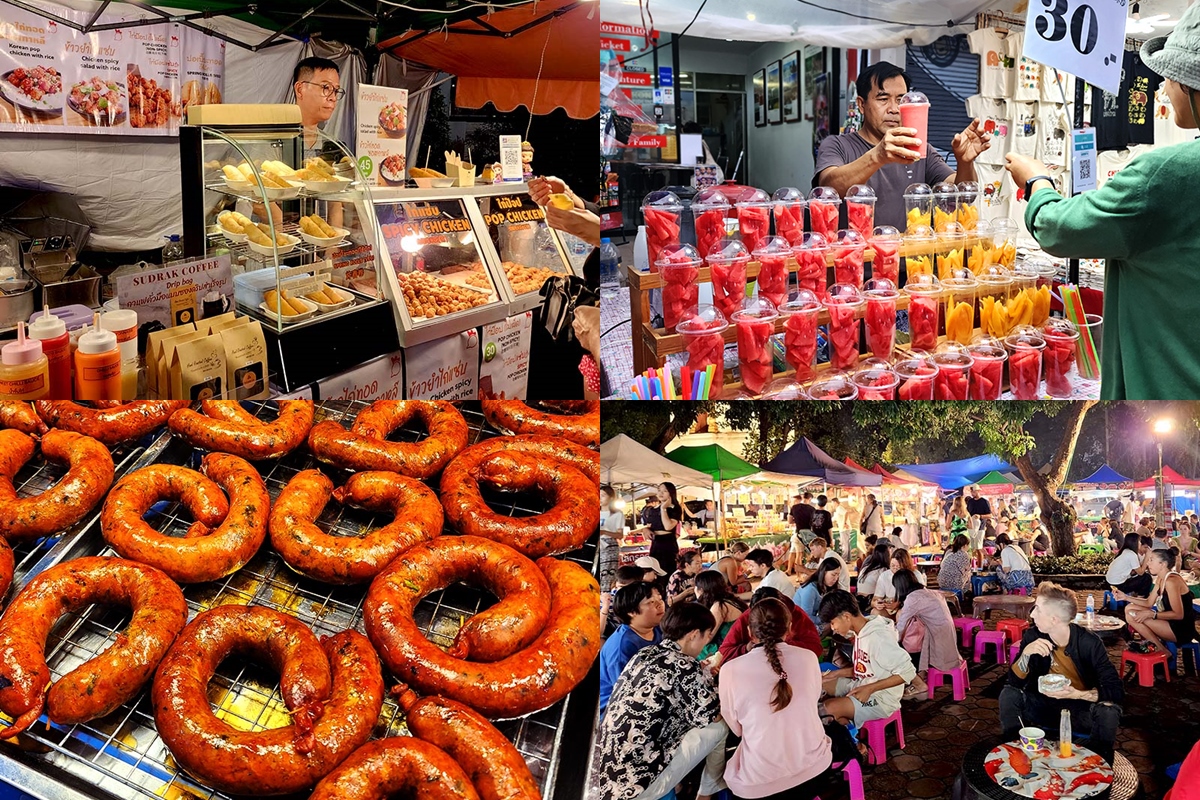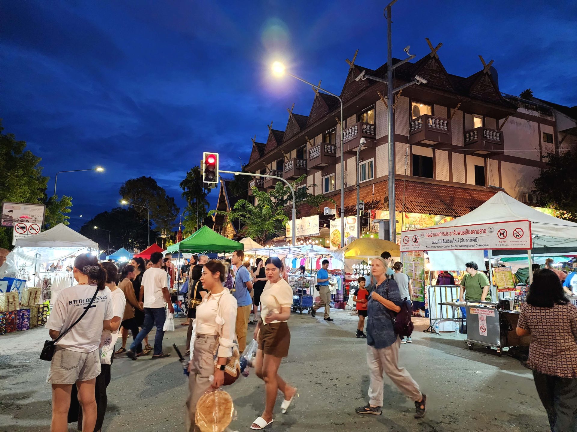 這裡可以吃到各式價格親民的泰北小吃,欣賞街頭表演、玩趣味小遊戲,還能挖到許多創意手工藝品、插畫、包包、服飾與紀念品,甚至可以現場體驗泰北盤髮、刺青,或是來一場街邊按摩,邊逛邊放鬆。