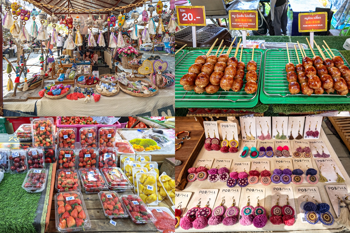 雖然規模不算特別大,但販售內容相當豐富,包括泰北香腸、Khai Pam 烤蛋、咖哩雞腿麵、手作麵包、現磨咖啡、銀飾、服飾與手工選物等一應俱全,氛圍自然輕鬆。
