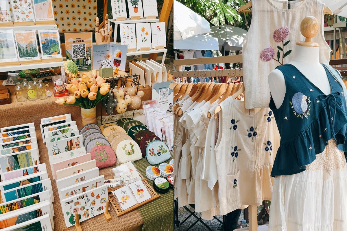 White Market 裡聚集了多個泰國在地品牌,從天然香氛、手作飾品、插畫明信片、乾燥花,到甜點、咖啡與生活小物,每一攤風格都十分鮮明,店主也都親切好聊,逛起來像是在城市裡尋寶。