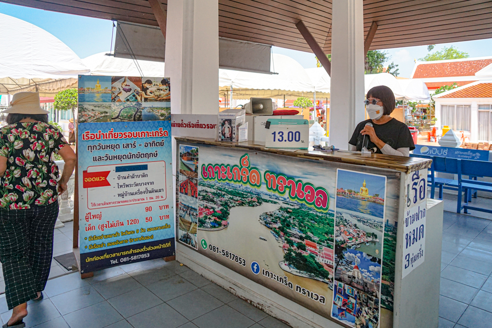 如果大家想以水路逛陶瓷島,可選擇 乘船遊覽河邊社區(เกาะเกร็ดทราเวล)行程,登船點就位在入島處,時長為 1 小時 20 分,票價為大人 90 泰銖,小孩 50 泰銖(不超過 120 公分),途中有三處拜訪點:蠟染製作屋(บ้านทำผ้าบาติก)→ 參拜 Wat Bang Chak(ไหว้พระวัดบางจาก)→ 陶藝村(หมู่บ้านเครื่องปั้นดินเผา),也有可額外包船行程(拜訪 9 座寺廟)。